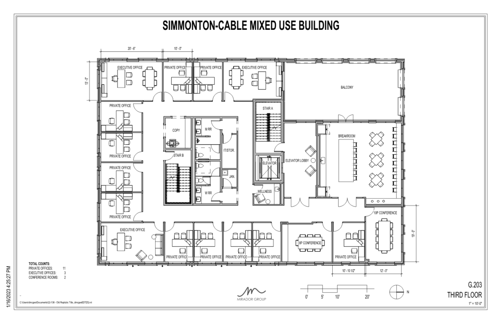 Returning the historical architecture back to Downtown Conroe, this new building will resemble a pair of buildings named “Simonton-Cable”. While the first floor will be reserved for retail storefronts, the second through fourth floors will offer executive suites with a rooftop terrace accessible by the fourth floor. A new concept to Downtown Conroe, these executive suites will offer flexible workspaces to the community.